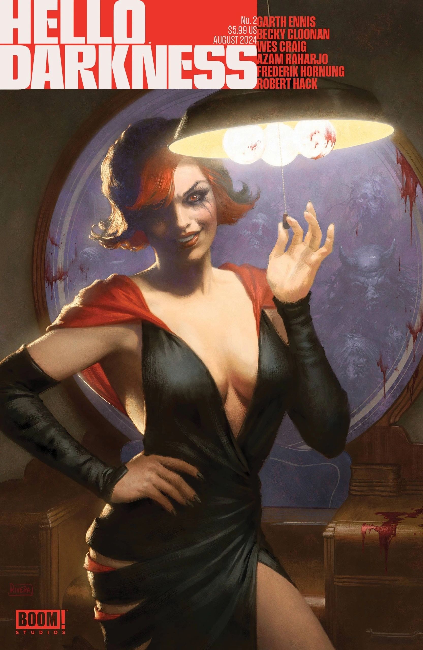 (W) Garth Ennis & Various (A) Becky Cloonan & Various (CA) Paolo Rivera The groundbreaking modern horror anthology continues with an unrivaled lineup of creative minds. Garth Ennis and Becky Cloonan are joined by Wes Craig, Robert Hack, Azam Raharjo, and Frederik Hornung. Rahajo and Hornung both make their comics debut in this special “all cartoonists” issue. Ennis and Cloonan continue “The War” with a second installment that ratchets up the nervous tension surrounding a world on the brink of nuclear war… Wes Craig puts capitalist pigs in their place with “Apocalypse in Slow Motion”, Frederik Hornung explores the unexpected horrors of blind dates in “Stargazers”, and Azam Raharjo supplies straight nightmare fuel with “The Clown”.