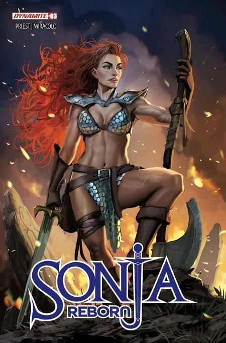 (W) Christopher Priest (A) Alessandro Miracolo (CA) Stjepan Sejic WHO MADE WHO? Is Maggie Sutherland hallucinating being Red Sonja, or is Red Sonja suffering from a delusion that she is Maggie Sutherland? In either case, the She-Devil with a Sword is unprepared for the visceral experience of her first barbarian bloodletting when her mercenary troop clashes with a Pict war party. The resulting panic attack prompts an intervention from the proto-deity known as The Light — but what Maggie learns about Sonja’s past and her own future isn’t exactly reassuring! The multiple-personality team of CHRISTOPHER PRIEST and ALESSANDRO MIRACOLO dig into the all-new She-Devil’s psyche in Sonja Reborn #3 — aided by dramatically diagnostic covers from STJEPAN SEJIC, STUART SAYGER, CHAD HARDIN, GREG LAND, and cosplay by ANI-MIA!
